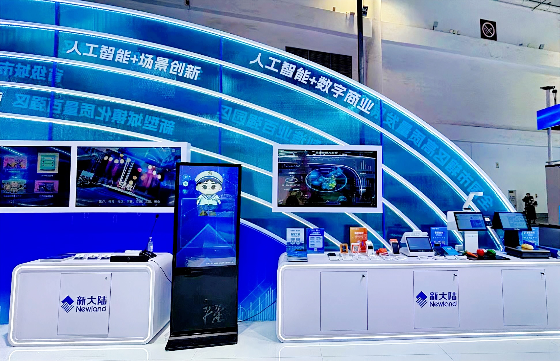 在峰會成果展,新大陸聚焦“數字商業+人工智能”,展出以智慧支付終端矩陣為核心并覆蓋餐飲、零售、農貿、文旅等多個民生領域的數字商業全場景解決方案。